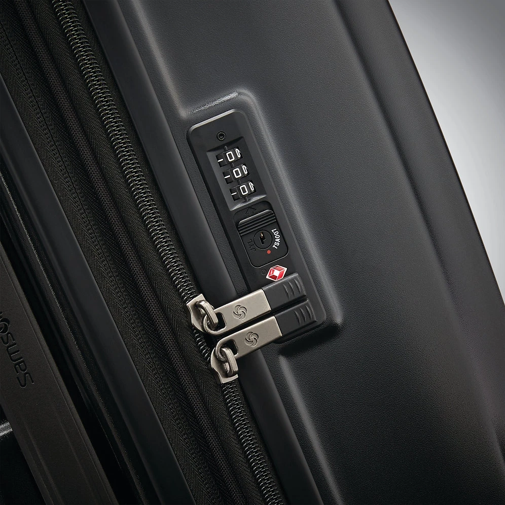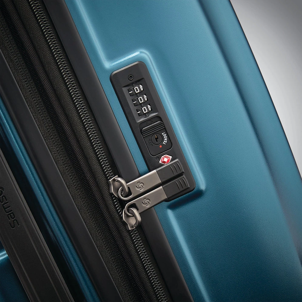 - Exterior: 100% polycarbonate shell, recessed TSA-approved lock adds security